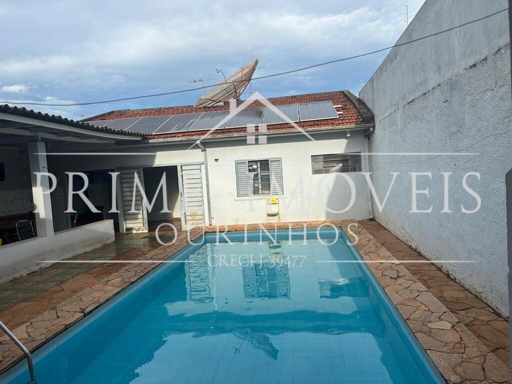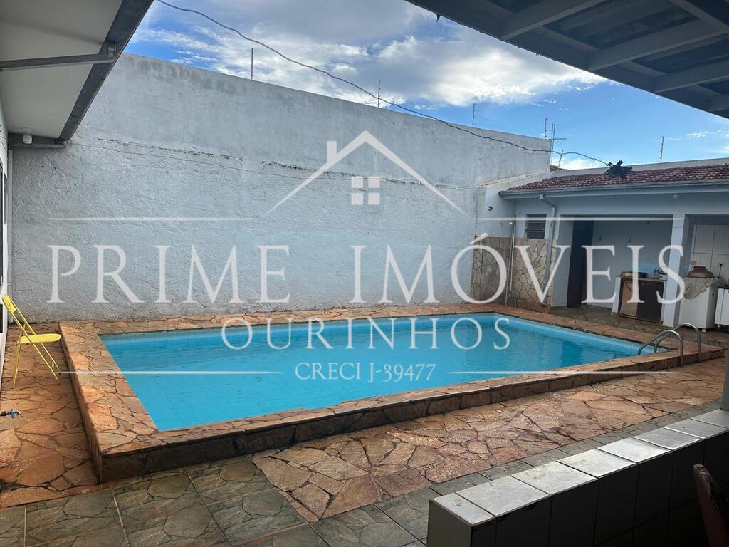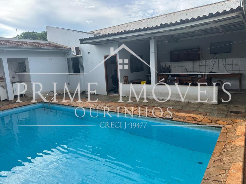 Área de serviço coberta, piscina e garagem ampla.